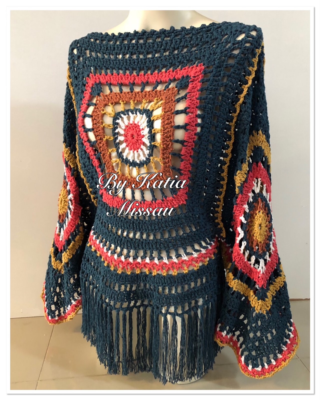 Hoje trago uma peça linda de squares em crochê, super colorida e atual.