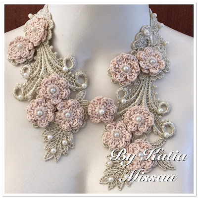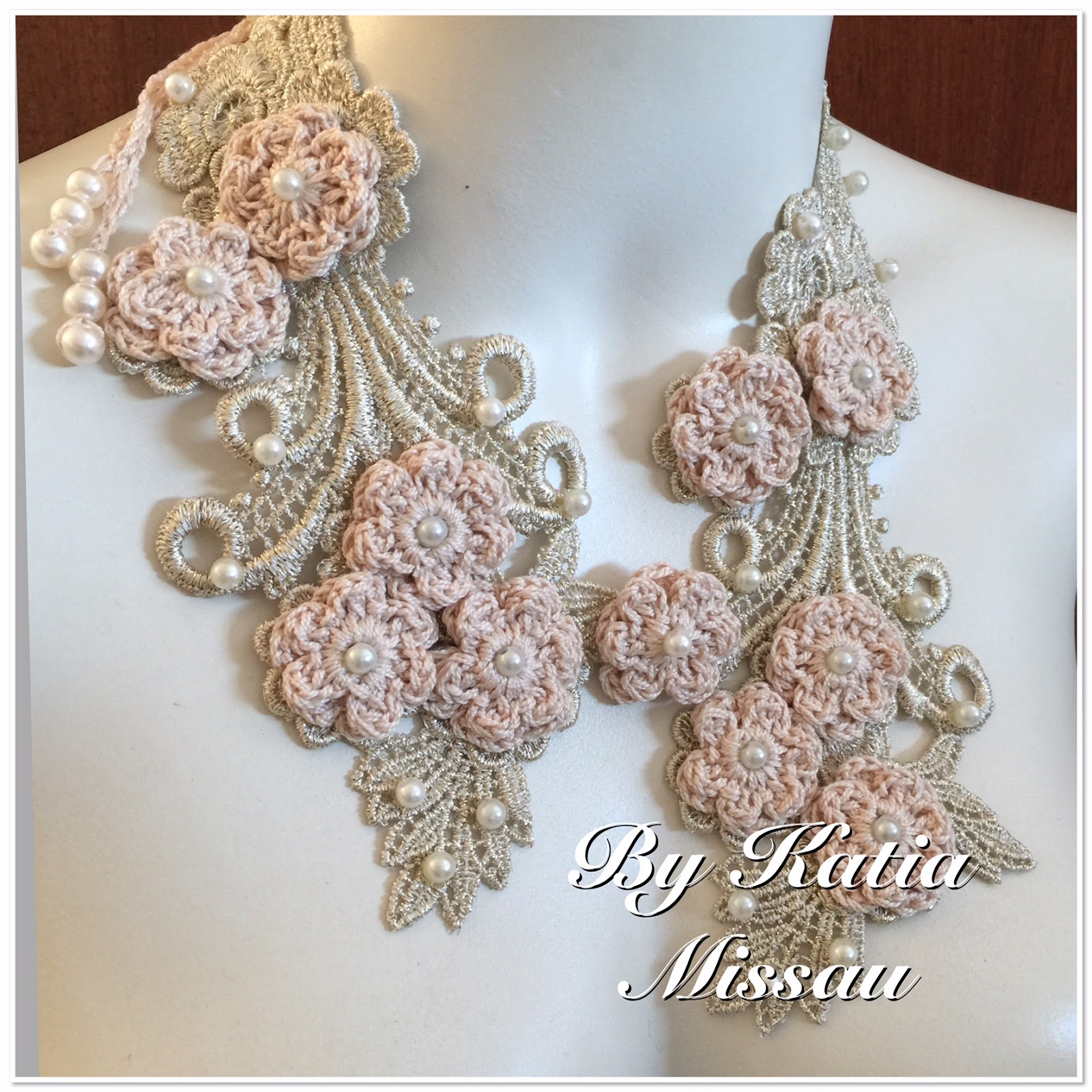 Olá amigas! O max colar Angel, feito com base de guipir e flores em crochê, agora vem repaginado.