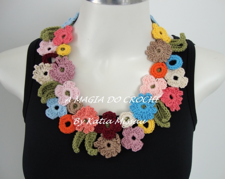 Olá amigas! Para alegria das minhas clientes, vim mostrar mais um colar com base em guipir e flores em crochê. Um acessório sofisticado para ser usado nas festas de fim de ano.