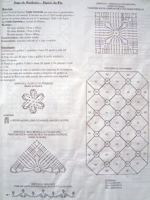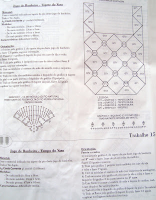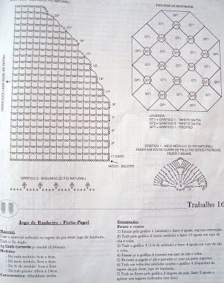 Olá amigas. Ufa!! Terminei meu jogo de banheiro. Deu um pouco de trabalho, mas valeu a pena. Usei barbante número 6 e agulha 3,00mm. Ele é feito todo em pedaços e depois costurado a mão com costura invisível. Achei que ficou lindo!! Junto vai o gráfico para quem quiser fazer. Tenham um ótimo final de semana e não deixem de comentar. Bjooss