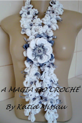 Olá amigas! Vim mostrar o cachecol Monique que foi capa da Revista Trico & Cia "Cachecóis" da Editora Liberato fascículo nº 49. Nele foi usado a lã Galant branca da Incomfio. Também usei pérolas, fitas e cetim no tom cinza. Antes de enviar para a editora, fotografei e agora quero compartilhar com vocês.