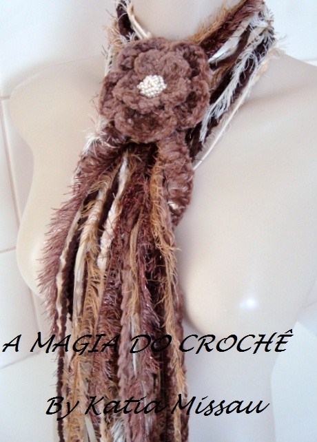 Olá meninas! Vim mostrar o Cachecol Monique usado de uma nova forma...enrolado no pescoço e com a flor (que é um broche), na lateral. Essa peça além de linda é bem versátil.  Foi para Juiz de Fora/ MG.