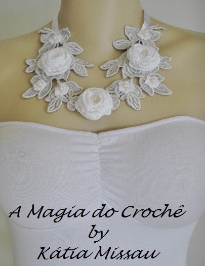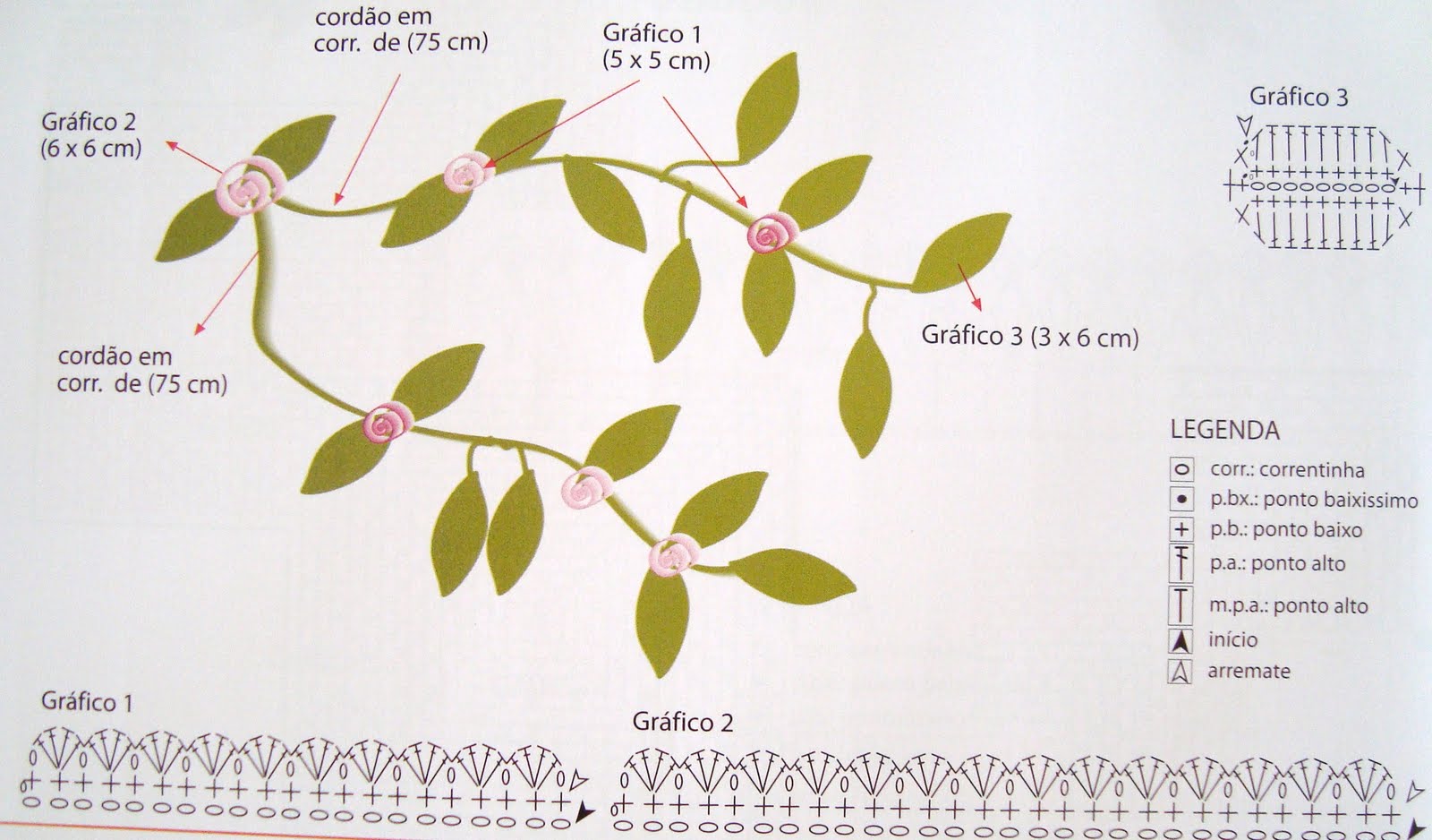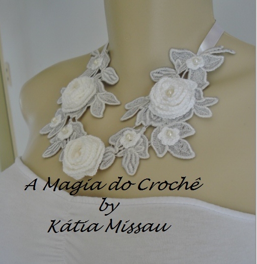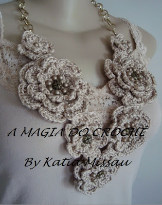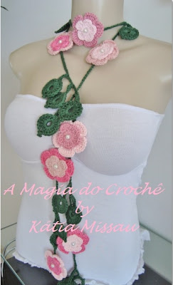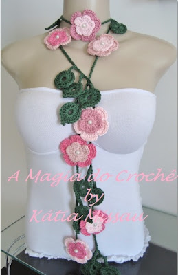 Este é o Cordão Botão de Rosas, feito em linha de algodão nas cores: Pink, Rosa seco e Rosa chá com detalhes em musgo.